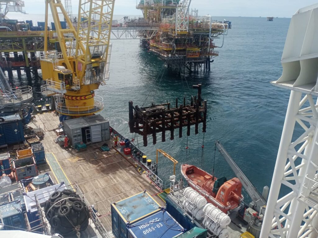 Subsea boat landing cutting using diamond wire technology in Brunei.