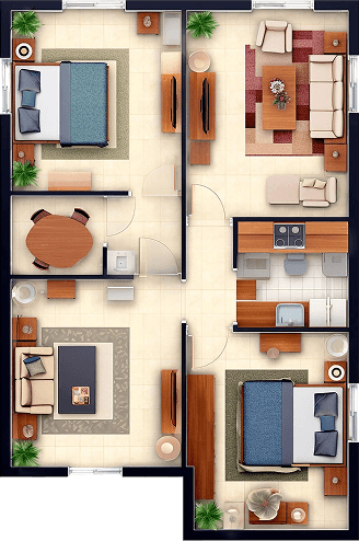 The living room is the heart of the home—a space designed for comfort, relaxation, and gathering. It typically features seating like sofas or armchairs, a coffee table, and often a TV or entertainment unit.