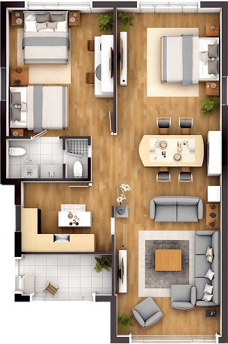 The kitchen is the soul of the home—a place where meals are prepared, stories are shared, and aromas fill the air. It often includes countertops, cabinetry, a stove or oven, and space for both cooking and connection.